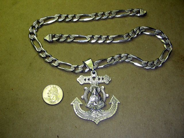 gold but blackened silver. The clasp was missing but the medallion attachment
